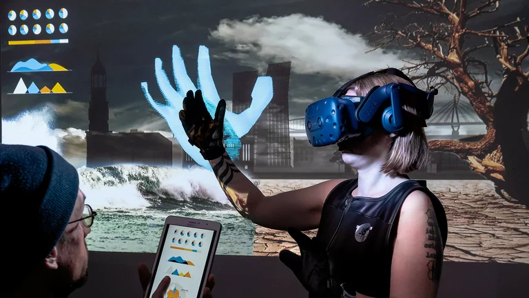 This project investigates the potential of immersive and multi-user-capable technologies to motivate users to act in a more climate-friendly way by enabling them to experience man-made climate change and its impending future scenarios. For this purpose, climate change becomes a (virtual) reality for users in a playful way, by locating them in the Free and Hanseatic City of Hamburg, Germany.